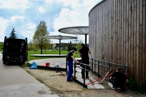 Das soll, wie gesagt, dann jetzt am 9. Mai der Fall sein. An dem Tag, übrigens einem Feiertag, nämlich Europatag, findet auf dem Areal rund um den Pavillon das „San’Up“ statt. Von 10 bis 18 Uhr erwarten die Besucher dort kostenlose Workshops aus den Bereichen Sport und Kultur.