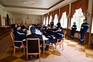 Mitten drin trifft man auf Joelle Lang. Die 41-jährige Hausfrau aus Echternach ist seit anderthalb Jahren eine freiwillige Feuerwehrfrau. Sie half im vergangenen Jahr nach der Flutkatastrophe im deutschen Ahrtal und ist nun zum ersten Mal bei den Vorbereitungen einer Flüchtlingseinrichtung dabei. „Ich würde das hier für jeden tun. Wenn man Zeit hat und etwas für den guten Zweck machen kann, soll man das auch tun“, erklärt die hilfsbereite Frau. Der Ehemann, aber auch ihr 13- sowie 15-jähriges Kind sind ebenfalls bei der Feuerwehr. Schnell hilft sie noch dabei, Matratzen auf die wieder zusammengeschraubten Betten zu legen, bevor gegen 10.15 Uhr im schicken Esszimmer des Hotels auf gepolsterten Stühlen eine Kaffeepause eingelegt wird.