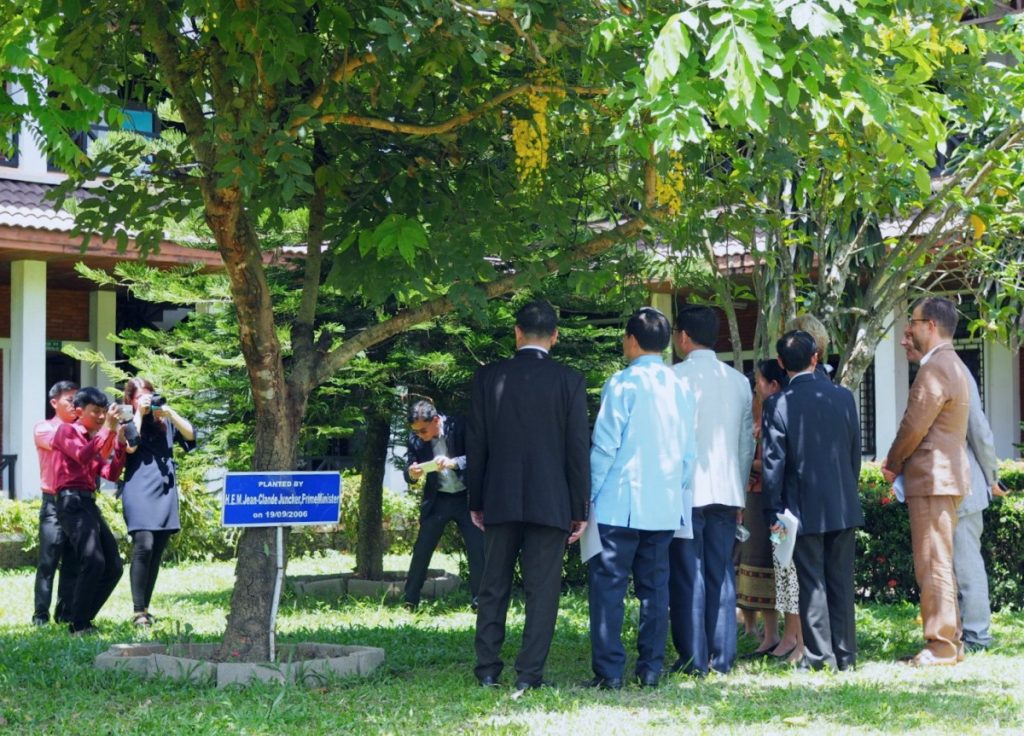 In der Stadt Pakxan, in der Bolikhamsai-Provinz, steht ein weiteres Krankenhaus, das von Luxemburg aus finanziert wurde. Dieses ist noch nicht ganz fertig renoviert, aber zum allergrößten Teil in Betrieb. Und wieder gibt es eine Begegnung mit einem bekannten luxemburgischen Namen – hier steht ein Baum im Hof, auf dessen Plakette sich ablesen lässt, wem er gewidmet ist: Jean-Claude Juncker. Auch dieses Provinz-Krankenhaus bietet Patienten alle medizinischen Dienste, wie man sie auch aus Luxemburg her kennt. Nach dem Rundgang, dem obligatorischen Rundgang und dem Eintrag ins goldene Buch des Hauses setzt sich der Luxemburger Tross wieder in Bewegung.