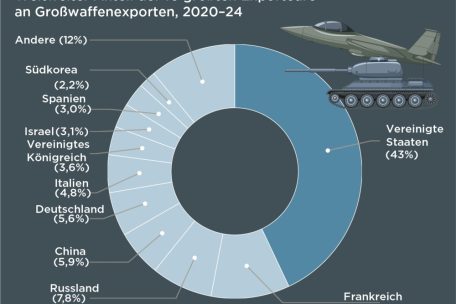 Während die Waffenexporte der USA von 2020 bis 2024 um 21 Prozent stiegen, führte Russland 64 Prozent weniger schwere Waffen im gleichen Zeitraum aus. Die schwedischen Friedensforscher führen diesen Rückgang jedoch nicht allein auf den hohen Eigenbedarf Russlands für seinen Aggressionskrieg gegen die Ukraine zurück. Neben weniger Aufträgen aus China und Indien, seien es auch die Sanktionen gegen Moskau, sowie der Druck der westlichen Alliierten gegenüber potenziellen Kunden, von Waffenkäufen in Russland abzusehen, die zum Rückgang der russischen Waffenexporte beigetragen haben. Zwei Drittel der russischen Waffen gingen dennoch an Indien (38 Prozent), China (17 Prozent) und Kasachstan (11 Prozent).