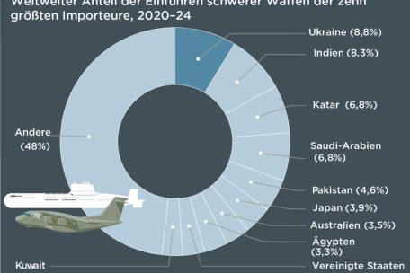 Erst vergangene Wochen einigten sich die EU-Staaten auf einen Finanzierungsplan für eine umfassende Wiederaufrüstung. Bis zu 800 Milliarden Euro könnten laut den Vorschlägen der EU-Kommission in den kommenden vier Jahren in die Verteidigungsausgaben der Mitgliedstaaten fließen. Aus dem Sipri-Bericht geht jedoch hervor, dass Europa in den vergangenen vier Jahren ohnehin sein militärisches Arsenal bereits kräftig aufgestockt hat. So seien die Waffenimporte nach Europa – gemeint sind schwere Waffen wie Kampfflugzeuge und -hubschrauber, Kriegsschiffe, Panzer, Panzerfahrzeuge, Luftabwehrraketen und dergleichen – in den Jahren 2020 bis 2024 um 155 Prozent gegenüber dem Zeitraum 2015 bis 2019 gestiegen, halten die Sipri-Forscher in ihrem Bericht fest. Grund dafür ist allerdings der Krieg in der Ukraine, denn das von Russland im Februar 2022 überfallene Land ist mittlerweile der größte Importeur schwerer Waffen mit einem Anteil von 8,8 Prozent an den weltweiten Waffenimporten.