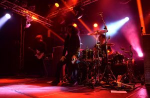 Die exaltierte Performance von Teri Gender Bender trug zum positiven Gesamteindruck bei. Sie machte Luft-Kung-Fu-Tritte, schrie ohne Mikrofon von der Bühne, schlug sich die Hände vor und ins Gesicht und stammelte Unverständliches ins Mikrofon. Sie ging auch in die Menge und trieb dort ihr ausdrucksstarkes Spiel weiter. Es ist nicht verwunderlich, dass Les Butcherettes ihre bisherigen Alben auf den Labels von Omar Rodríguez-López und Mike Patton (Faith no More, Mr. Bungle) veröffentlicht haben. Beide sind bekannt für ihren speziellen, um nicht zu sagen avantgardistischen Musikgeschmack.