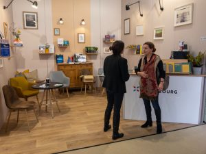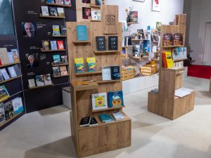 Au-delà de tels détails infimes, le stand, cette année-ci, toujours en face de celui d’ARTE et donc placé de façon proéminente, est plus réussi car plus ouvert, avec ses îlots boisés que l’on peut déplacer pour les tables rondes et débats et qui dégagent une plus grande chaleur. Autre détail qui n’est pas sans importance, un deuxième coin, ressemblant à un espace café et dont l’autorisation d’occupation avait déjà été accordée peu après la fin de l’édition de l’année dernière, permet aux intéressés de se réunir autour d’une table afin de parler business, littérature ou les deux.