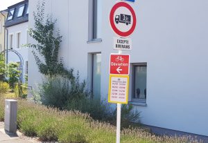 Erfrischend anders ist die Route B des „Vëlosummer 2020“, denn sie ist als Einzige ausgeschildert. Nicht komplett, aber immerhin auf dem gesamten Territorium der Gemeinde Kehlen, und die macht gut und gerne ein Drittel der Strecke aus. Man muss den „Déviation“-Schildern folgen und meist hängt darunter auch noch ein Hinweis auf die Termine des „Vëlosummer“. Nach den Erfahrungen der fünf vorhergegangenen Praxistests eine echte Wohltat und absolut vorbildlich.