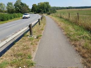 Das Stück zwischen Keispelt und dem „Direndall“ ist eine Zumutung. Hier darf man niemanden langschicken. Der eine Kilometer vermiest eine eigentlich schöne Route, die sogar auf dem Gebiet der Gemeinde Kehlen für den „Vëlosummer 2020“ beschildert ist.