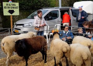 Am Stand der Genossenschaftskellerei entdecken wir die luxemburgischen Weinhoheiten. Rieslingkönigin Anne aus Wormeldingen sowie Anne-Catherine aus Grevenmacher mit ihren Prinzessinnen machen der lokalen Winzerschaft ihre Aufwartung. Vinsmoselle-Präsident Josy Gloden schenkt Federweißen aus an die Gäste, unter ihnen Innenminister Léon Gloden, ORT-Direktor Gilles Estgen und Serge Fischer, Direktor am IVV in Remich.