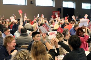 Bezirkskongresse vor Wahlterminen dienen dazu, die Basis auf den bevorstehenden Kampf um Wählerstimmen einzuschwören. Allzu viel mussten sich die leitenden LSAP-Köpfe am Samstag beim Bezirkskongress Süden nicht anstrengen. Die Partei spürt starken Aufwind und den Optimismus, es bei den kommenden Wahlen besser als in der Vergangenheit machen zu können. Diesen Optimismus teilten auch die fast 200 Delegierten im Kulturzentrum Mukeme in Keispelt. Eine Zuversicht, die speziell durch wachsende Mitgliederzahlen gestärkt wird. Gleich zweimal wurde daran erinnert. Von einem drastischen Anstieg sprach Bezirkspräsidentin Vanessa Tarantini, von beeindruckenden Zahlen Co-Parteipräsident Dan Biancalana.