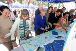 Auf der Place d’Armes im Zentrum der Hauptstadt steht am Mittwoch alles im Zeichen von Europa. Vor genau 68 Jahren wurde eine Europäische Gemeinschaft nämlich erstmals angesprochen: Am 9. Mai 1950 schlug der französischen Außenminister Robert Schuman in einer Rede die Schaffung einer Europäischen Gemeinschaft für Kohle und Stahl vor. Aus diesem ersten Vorschlag entstand die heutige Europäische Union. Der 9. Mai wird seit 1985 als Europatag gefeiert.