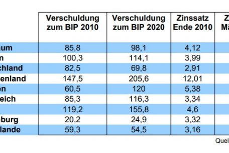 Ähnlich ist die Lage in Deutschland: Trotz Negativzinsen erwartet die Bundesregierung, dass sie in diesem Jahr Zinsen in Höhe von 10,3 Milliarden Euro auf den Staatsschulden bezahlen muss, wie die Nachrichtenagentur Reuters Ende April berichtete. Im Vorjahr waren die Zinsausgaben, ungeachtet der Neuverschuldung in Rekordhöhe, auf 6,4 Milliarden Euro gefallen, den niedrigsten Wert seit Jahrzehnten. Wegen der am Markt wieder leicht anziehenden Zinsen habe die Bundesregierung den Posten für erwartete Zinsausgaben für 2021 jedoch wieder auf 10,3 Milliarden Euro hochgeschraubt.