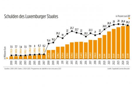 Trotzdem dürften sich die Luxemburger Zahlen zur Verschuldung künftig wohl besser entwickeln als geplant. So hat es in den ersten Monaten des Jahres 2021 eine deutlich bessere Entwicklung bei den Staatsfinanzen gegeben als erwartet. Die schlimmen Prognosen, wie sie im Oktober 2020 erstellt wurden, werden sich nicht erfüllen. Damals wurde erwartet, dass das Defizit beim Zentralstaat 2020 bei rund 5 Milliarden – und im laufenden Jahr bei 2,5 Milliarden – liegen würde. Aktuell wird laut PSC für 2020 mit einem Minus beim Zentralstaat von 3,34 Milliarden beziehungsweise 2,1 Milliarden für 2021 gerechnet.