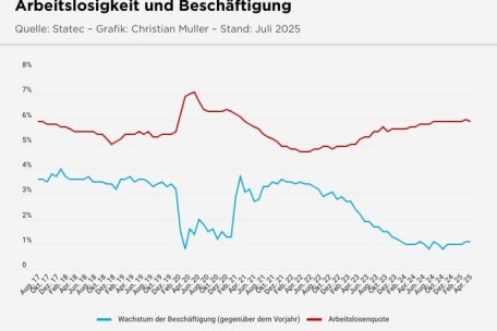 Je nach Sektor ist die Entwicklung in den ersten drei Monaten des Jahres 2025 dabei sehr unterschiedlich ausgefallen: Im Vergleich zum Vorjahr wurden spürbare Zuwächse beim Staat, sowie leichte bei den Unternehmensdienstleistungen und im Handel festgestellt. Im Bausektor jedoch, wie auch in der Industrie und sogar im Bereich ICT wurden hingegen Rückgänge bei der Zahl der Beschäftigten gemessen.