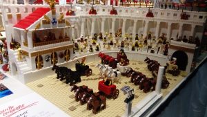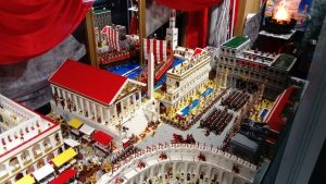 Am Schaufenster eines Spielwarenladens in der Trierer Nagelstraße drücken sich derzeit nicht nur Kinder ihre Nasen platt: Dort ist ein detailreiches antikes Diorama aus Lego gebaut worden – mit Porta Nigra, einem Amphitheater, Tempel, Palast, Forum und Hafen.