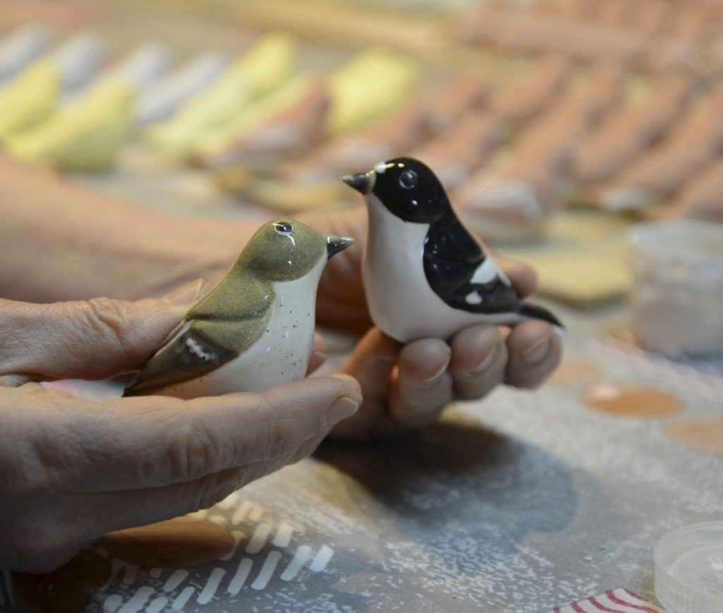 „Péckvillercher“ hat die Keramikkünstlerin eigentlich schon immer geformt, allerdings begann sie erst 1996 damit, die heimische Vogelwelt als Modell zu nehmen. „Ich suchte eine Marktlücke – und das gab es damals noch nicht!“