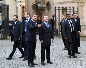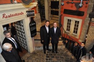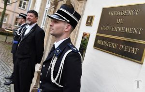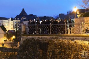 Aus dem Staatsministerium ging es nämlich zuerst auf den Clairefontaine-Platz, von da über den Knuedler zum großherzoglichen Palast, genauer ins Chocolate House, und von dort zurück zum offiziellen Programmteil, einem Abstecher ins hauptstädtische Museum. Dem folgte ein Spaziergang von der Corniche zur Michaelskirche, wo man unerwartet Großherzog Henri antraf, der dort einer Messe beigewohnt hatte.