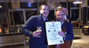 Gambrinus-Präsident Claude Lorang [r.] bei einer Diplomübergabe.