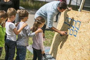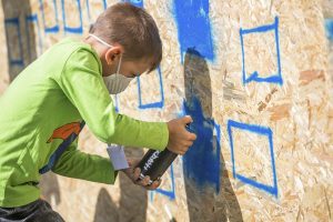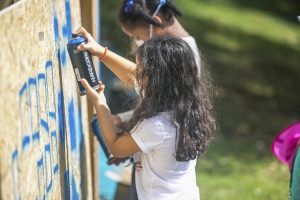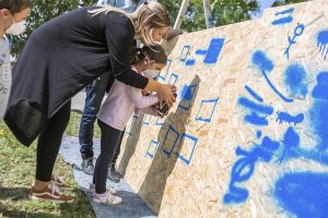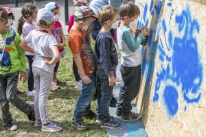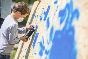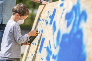 Sprühen, was das Zeug hält, das lassen sich die Kids nicht zweimal sagen. Mit einer Atemschutzmaske versehen dürfen sie große Tafeln vollsprühen. Rund 180 Mädchen und Jungen waren, im Rahmen der „Vakanznomëtteger“ der Gemeinde, die ganze Woche über im Einsatz. Unterstützung gab es von sieben Senioren aus dem CIPA in Beles.
