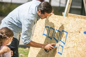 In einem Workshop haben Kinder und Senioren aus der Gemeinde Sanem die ganze Woche über Graffiti auf Tafeln gesprüht. Ziel ist es, die Balkone des Flüchtlingsheims „Foyer Dickskopp“ zu verschönern.