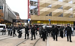Am Abend hört man immer wieder Böller und Sirenen in der Innenstadt. Die Polizei ist vielerorts präsent und regelt weiterhin auch den Verkehr. Auch eine kleinere Gruppe von 20 Protestlern, die trotz Polizeiblockade an der Grand-rue in die Innenstadt gelangen konnte, beschäftigt die Beamten – zwei davon nehmen sie laut einer Sprecherin fest. Hin und wieder sieht man, wie Polizisten in Eile in ihren Dienstwagen springen oder sich ein Trupp Polizisten in Montur im Laufschritt in Bewegung setzt. Ein paar Leute, die „la bagarre“ machen wollten, sagt der junge Grenzgänger, während er auf einem Mäuerchen etwas abseits der Gruppe auf dem Glacis sitzt. Bis 17.00 Uhr meldet die Polizei später „ein halbes Dutzend“ Festnahmen.