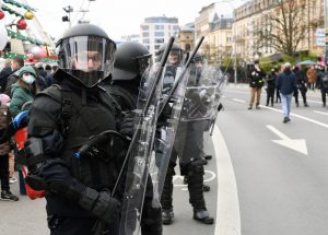 Nur wenige Meter weiter, auf dem Boulevard Royal, steht ein Fahrzeug mit Wasserwerfern aus Belgien für einen möglichen Einsatz bereit. Zuletzt war das am vergangenen Wochenende passiert, nachdem Demonstranten versucht hatten, die polizeiliche Absperrung zu durchbrechen und aus der Zone herauszukommen. Dieses Mal löst sich die Situation jedoch nach einigen bangen Minuten auf und die Demonstranten treten den Rückzug an.