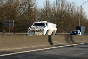 Das ist sehr gefährlich. Jeden Moment könnte plötzlich ungewollt und rein zufällig ein Gegenstand auf ein Fahrzeug herunterfallen.