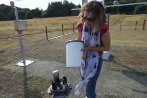 Den „Wetterpark“ von Meteolux kann man erst nach einigen Sicherheitskontrollen betreten. Mitten auf dem Flughafengelände liegt die kleine, eingegrenzte Fläche, auf der die Messgeräte der Meteorologen aufgebaut sind. Es gibt alles, was das Herz eines Wetter-Nerds begehrt: Regenmesser, Sonnendauermesser, Temperatur- und Luftfeuchtigkeitsmesser. Um den Niederschlag am Findel zu messen, werden in einer weißen Tonne die Regentropfen gesammelt. Das Wasser fällt auf eine Waage. Und das Gerät zählt mit, wie oft ein Gefäß, das exakt zehn Zentiliter misst, gefüllt wird. So können die Meteorologen genau feststellen, wie sehr und viel es geregnet hat. „Der Regenmesser ist im vergangenen Monat nicht oft zum Einsatz gekommen“, meint Zimmer. „Im Juli hatten wir nur 17 Liter Regen pro Quadratmeter.“