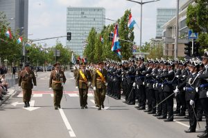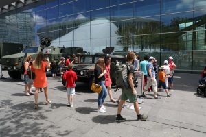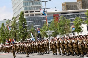 Blitzende Orden, schicke Uniformen und auf Hochglanz polierte Fahrzeuge, das haben die Besucher bei der Militärparade anlässlich des Nationalfeiertags zu sehen bekommen. Anstatt über die Avenue de la liberté im Bahnhofsviertel ging es dieses Mal über die Avenue J.F. Kennedy auf dem Kirchberg. Wegen der Arbeiten an der Tramstrecke musste die Parade umziehen, doch die neue Location stand der Tradition gut zu Gesicht. Anschließend gab es auch dieses Jahr wieder das Armeefest, doch statt im Rosengärtchen fand das Fest dieses Mal auf der place de l’Europe auf dem Kirchberg statt.