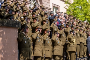 Begleitet von der Militärmusik sang Stéphanie Schlink anschließend die Nationalhymne, nachdem über 40 Militärangehörige für ihre langen Dienstjahre in der Luxemburger Armee geehrt wurden. Eine kurze Parade schloss die Feierlichkeiten ab.