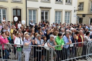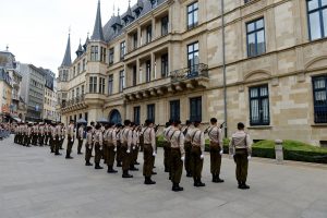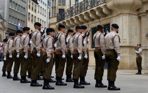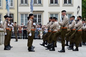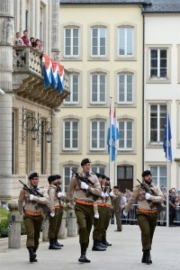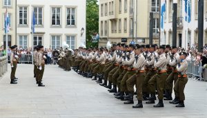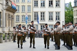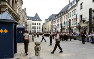„Einmal auswechseln, bitte“, hieß es am Samstagnachmittag vor dem großherzoglichen Palast in der Stadt. Die Wachablösung ist traditionell der Auftakt für die Veranstaltungen am Vorabend von Nationalfeiertag. Hunderte Schaulustige haben sich trotz schwülem Wetter versammelt, um dem Spektakel beizuwohnen.
