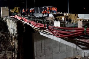 Am späten Abend wurden die Gleitschienen für die große Schiebeaktion verlegt (Video: Editpress/Claude Lenert):