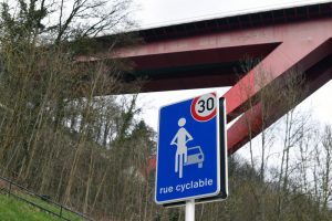 Ja. Ein Beispiel sind die „rues cyclables“. Wir sind nicht ganz zufrieden damit und wollen da noch ein bisschen mehr Regeln hineinbringen. Was die Farbe angeht, so machen es z.B. die Niederländer mit System. Anderes Beispiel sind die Fahrradrouten außerorts, die für den motorisierten Verkehr eine geringe Bedeutung haben. Da wird die Geschwindigkeit auf 50 heruntergesetzt und Fahrradstreifen in roter Farbe in beide Richtungen eingezeichnet, auch wenn die Autos jetzt nur in eine Richtung fahren dürfen. Alleine durch die Farbe und die Konfiguration der Straße weiß der Autofahrer, dass es sich um eine Fahrradroute handelt.