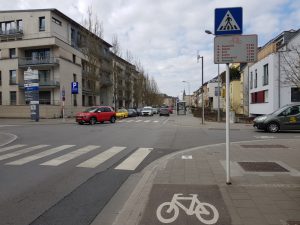 Ampeln z.B. Die Stadt Luxemburg ist ja momentan die erste Gemeinde, die es mit Abbiegeampeln für Radfahrer probiert. Aber natürlich auch bauliche Maßnahmen. Eine Tempo-30-Straße ist ja für Radfahrer gut, aber die Straße muss so konzipiert sein, dass auch 30 gefahren wird.