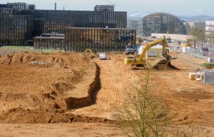 Die eigentlichen Arbeiten auf der Baustelle hatten bereits im März dieses Jahres begonnen und sollen im Februar 2023 – für das Hauptgebäude – beziehungsweise im Februar 2024 – für den 23-stöckigen Turm – abgeschlossen sein. Für das Gesamtprojekt zeichnet das deutsche Architektenbüro KSP Jürgen Engel Architekten verantwortlich, das von Ingenieurbüros aus Frankreich und Luxemburg in verschiedenen technischen Bereichen unterstützt wird. Der gesamte Komplex soll eine Aufnahmekapazität von rund 3.600 Beschäftigten auf 36.600 Quadratmetern Bürofläche haben.