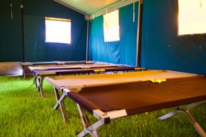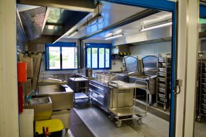 Die „Wëllefcher“ schlafen in Rudeln in Großzelten auf Feldbetten. Die Verpflegung kommt nicht aus Dosen oder Lieferdiensten – sie wird vor Ort gekocht. Frisch, regional, bio. Eine riesige Küche aus elf Containern versorgt täglich alle Teilnehmer. „So eine Küche ist normalerweise bei der NATO im Einsatz“, erklärt Fränk Prim.