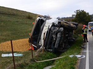 Ein Lieferwagen ist am Montagmorgen um 8.55 Uhr auf der N8 mit einem Lkw zusammengestoßen. Der Truck fuhr aus Richtung Bruch nach Reckingen. Kurz vor dem Abzweig der rue de Brouch kam es zu der Kollision. Das berichtet die Polizei. Durch den Aufprall wurde der Lieferwagen in den Straßengraben geschleudert. Der schwere Lkw, der mit Sandstein beladen war, fuhr in den Graben und kippte auf die Seite.