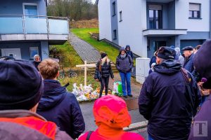 Organisiert wurde die Trauerfeier von Jasmine Muller. Die Frau aus Wiltz stand in keinem besonderen Verhältnis zur Familie des verstorbenen Jungen, aber sie fühlte sich von der Tat dermaßen betroffen, dass sie Menschen zu einer Abschiedszeremonie am Unfallort versammelte. Dort wurde ein Holzkreuz aufgestellt, unter dem Trauernde Blumen und Plüschtiere legten.