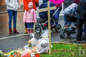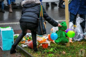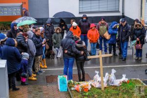 Etwa 100 Menschen haben für das Opfer eine Gedenkzeremonie abgehalten, unter ihnen auch viele Mütter mit kleinen Kindern.