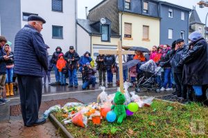 Auch der Wiltzer Dechant Martin Molitor ergriff das Wort und gab bekannt, dass der Junge im Kreis der Familie bestattet wurde und die Mutter, sobald sie sich einigermaßen erholt hat, eine größere Abschiedsfeier halten möchte.