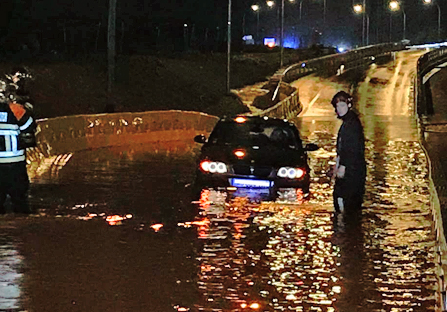 Gegen 23 Uhr musste ein Autofahrer aus der Ausfahrt der A13 befreit werden: Da hatten sich derartige Wassermassen angesammelt, dass ein Autofahrer mit seinem Wagen liegen geblieben war.
