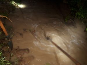 stundenlang mit mehreren Pumpen und Sandsäcken, um zu verhindern dass die Keller mehrerer Häuser geflutet werden“, meldet der Chef de Corps D.Horsmans.