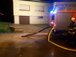 Das Centre d’Intervention Dudelange in Düdelingen meldet heute 33 Einsätze in der Nacht: Vier Teams mit insgesamt 20 Feuerwehrleuten sind dazu ausgerückt. Meist mussten sie vollgelaufene Keller auspumpen.
