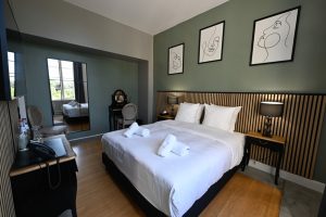 Seit geraumer Zeit werden bereits Zimmer angeboten. Im Moment allerdings nur Übernachtung und Frühstück. Am besten im Hotel selber den Preis anfragen, statt auf einer Reservierungsplattform. Im Prinzip in spätestens zwei Wochen soll dann ein Bistro mit Terrasse im Park eröffnen – zwischen dem historischen Rundturm und dem Hauptgebäude des Schlosses. Die Genehmigung habe er bereits, die richtige Kaffeemaschine fehle noch. Selbstverständlich stünde das Bistro mit Moselblick nicht nur Hotelgästen zur Verfügung, sondern jedem Besucher, so Marx. Seit dem Beginn der Umbauarbeiten im Europamuseum fehlt das Bistro, was Einheimische wie auch die zahlreichen Touristen an der Esplanade im Dreiländereck sehr bedauern. Jean-Baptiste Marx gibt sich überzeugt: „Ja, die Terrasse wird bald öffnen!“ Wir nehmen ihn beim Wort!