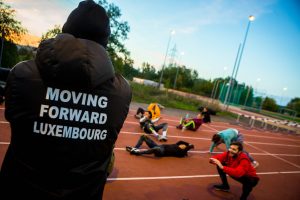 Seit 2016 existiert das Outdoor-Fitness-Angebot von Christophe Tironi, Andy Liegeois und Nicolas Stringaro als Untergruppe des „Cercle athlétique Belvaux“, entstanden ist die Einheit durch einen spontanen Internetaufruf. „An einem verregneten Tag im November haben Andy und ich uns hier auf der Leichtathletikpiste getroffen, um zu trainieren, und auf Facebook gepostet, ob sich uns jemand anschließen will. Es ist natürlich wegen des Regens keiner gekommen, aber unser Foto hat dann für Aufmerksamkeit gesorgt.“ Ein ungezwungenes Workout unter Freunden, gespickt mit der nötigen Portion Professionalität seitens der Trainer – ein Konzept, das auch im Corona-Jahr zu funktionieren scheint. Trotz Hundewetter stehen am Montagabend 21 motivierte Sportfans auf der Piste und warten auf die Anweisungen ihres Trainers. Nach 18-minütigem Warm-up folgt ein Workout im Dreier-Team, fast so, als wäre nie etwas gewesen.
