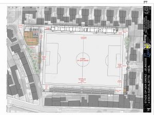 Das „Downsizing“ ist nötig, da auch das Spielfeld um ca. eineinhalb Meter in Richtung „Gradins“ verschoben werden soll. Das, weil die Haupttribüne den aktuellen Sicherheitsnormen angepasst werden muss. Und die besagen, dass der Fluchtweg nach vorne offen zu sein hat. Das heißt, die Zuschauer sollen bei einem größeren Zwischenfall in Richtung Spielfeld flüchten können. Dazu ist momentan zu wenig Platz, da sich die Tribüne zu nah am Spielfeldrand befindet. Die Sitzplatzkapazität der überdachten Tribüne verringert sich von aktuell 946 auf 807. Insgesamt wird das runderneuerte Stadion 1.510 Sitzplätze bieten (heute 1.716). An der Südseite der „Gradins“, wo die hartgesottenen Fans des Rekordmeisters beheimatet sind, werden im Rahmen des Neubaus ein neuer Ausschank und zeitgemäße Sanitäranlagen gebaut.