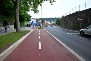 Dieser neue Abschnitt ist die erste Radstrecke Luxemburgs, die mit rotem Belag ausgestattet wurde. „Das ist sehr wichtig, damit Radfahrer und Radfahrerinnen einen klar definierten Platz haben, den Fußgänger oder Autofahrer nicht benutzen können“, sagt Yuriko Backes. Die rot gefärbten Steinchen sollen in Zukunft noch öfter für die Oberflächen von Radwegen benutzt werden.