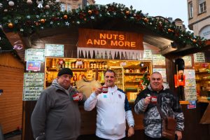 Ohne Firlefanz wird sich beim Verein auf den klassischen roten Glühwein konzentriert, mit einem Rezept „wie unsere Großmütter uns es früher schon beigebracht haben“. Sternanis, Zimt und Gewürznelken sind nur einige der Zutaten, die es für einen guten Glühwein braucht. Der Basiswein stammt aus Frankreich, denn, so Marx: „Dieser passt am besten zum Glühwein und schmeckt unseren Kunden.“ Rund 1.500 Liter des Heißgetränks konnten die Standbetreiber aus Schüttringen in den ersten drei Wochen des Weihnachtsmarkts bereits verkaufen. Den beliebten Glühwein gibt es dabei auch für zu Hause, schön abgefüllt in Flaschen, sodass man ihn nur noch aufzuwärmen braucht und dann im Trockenen genießen kann. Denn eines wird nach der Runde über die Weihnachtsmärkte klar: Manche Dinge werden sich wohl nie ändern – oder, um es mit den Worten von Sheila auszudrücken: „Never change a winning team!“