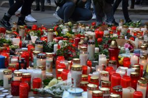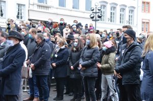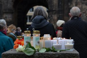 Während der Reden von Dreyer und Leibe sieht man in der Menge immer wieder hier und da ein zustimmendes Nicken, wenn der Zusammenhalt der Trierer und der Gäste aus der Umgebung zur Sprache kommt. Viele Menschen, die mit ihren Liebsten gekommen sind, stehen dicht an dicht und halten sich in den Armen. Als sich die Veranstaltung auflöst, gehen einige der Gäste nach Hause, viele bleiben allerdings noch auf dem Vorplatz, um sich zu unterhalten und innezuhalten. Einzelne Besucher stellen Kerzen und Blumen auf die Steinblöcke vor der Porta Nigra – und der Rest macht sich auf, um gemeinsam noch die anderen Plätze in der Innenstadt aufzusuchen, die mit Lichtern zur Erinnerung an die Opfer bestückt sind.
