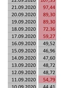 Eine Hoffnung für Luxemburg wären wohl nur noch rasch fallende Infektionszahlen. Laut früheren Erklärungen der deutschen Bundesregierung wird die Risikogebiets-Liste alle zwei Wochen aktualisiert, das nächste Mal wäre dann am 30. September. Die Chancen stehen aber knapp, bis dahin unter die kritische Marke zu kommen: Denn in den kommenden vier Tagen wird Luxemburg weiter darüber liegen – selbst, wenn ab jetzt keine einzige Infektion mehr festgestellt würde.