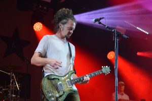 Dicht gefolgt von Lenny Kravitz, der begleitet von den Jazzklängen von John Coltranes „A Love Supreme“ auf der Bühne erschien und am Ende seines Sets so in Hochstimmung geriet, dass er drei Zugabenblöcke zum Besten gab und eine halbe Stunde überzog. Zwischendurch übertrieb er seine „Love & Peace“-Parolen allerdings derart, dass man glaubte, ein Prediger des Senders Bibel-TV hätte sich dazugeschaltet. Zum Abschluss spielte Lenny natürlich, na was wohl? Na klar: „Let Love Rule.“
