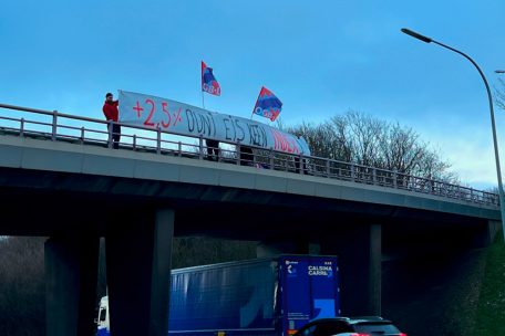 Das Indexsystem ist aber nach wie vor unter Druck, vor allem vonseiten der Arbeitgeberverbände. Um darauf aufmerksam zu machen, hatte die Gewerkschaft am Montagmorgen eine Aktion auf vier Autobahnbrücken organisiert: Auf der A1 in Grevenmacher, der A3 in Düdelingen, der A4 in Leudelingen und der A6 in Mamer war in drei Sprachen die eindeutige Botschaft zu lesen: „+2,5%: Ouni eis keen Index“.