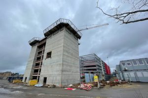 Das noch unfertige Gebäude ist schon von weitem zu sehen. 3.500 Tonnen Stahl werden hier, in der Nähe des Recyclingzentrums, verarbeitet. Am Bahnhof von Rodange, nahe der Grenze zu Frankreich und Belgien, entsteht eines der größten Parkhäuser in Luxemburg. 1.600 Fahrzeuge sollen hier künftig parken können. Das sechs Etagen hohe Gebäude wird über zwei kreisförmigen Rampen zu erreichen sein, die in Kombination mit einem Parkmarkierungssystem schnelle Zu- und Abfahrten ermöglichen. Die technische Herausforderung dieser Baustelle sei der Bau von zwei Einweg-Spiralrampen für die Zu- und Abfahrt der Fahrzeuge, schreibt die Konstruktionsfirma „Giorgetti“ auf ihrer Webseite. Über eine Fußgängerbrücke im dritten Stockwerk wird man direkt zum Bahnhof gelangen können.